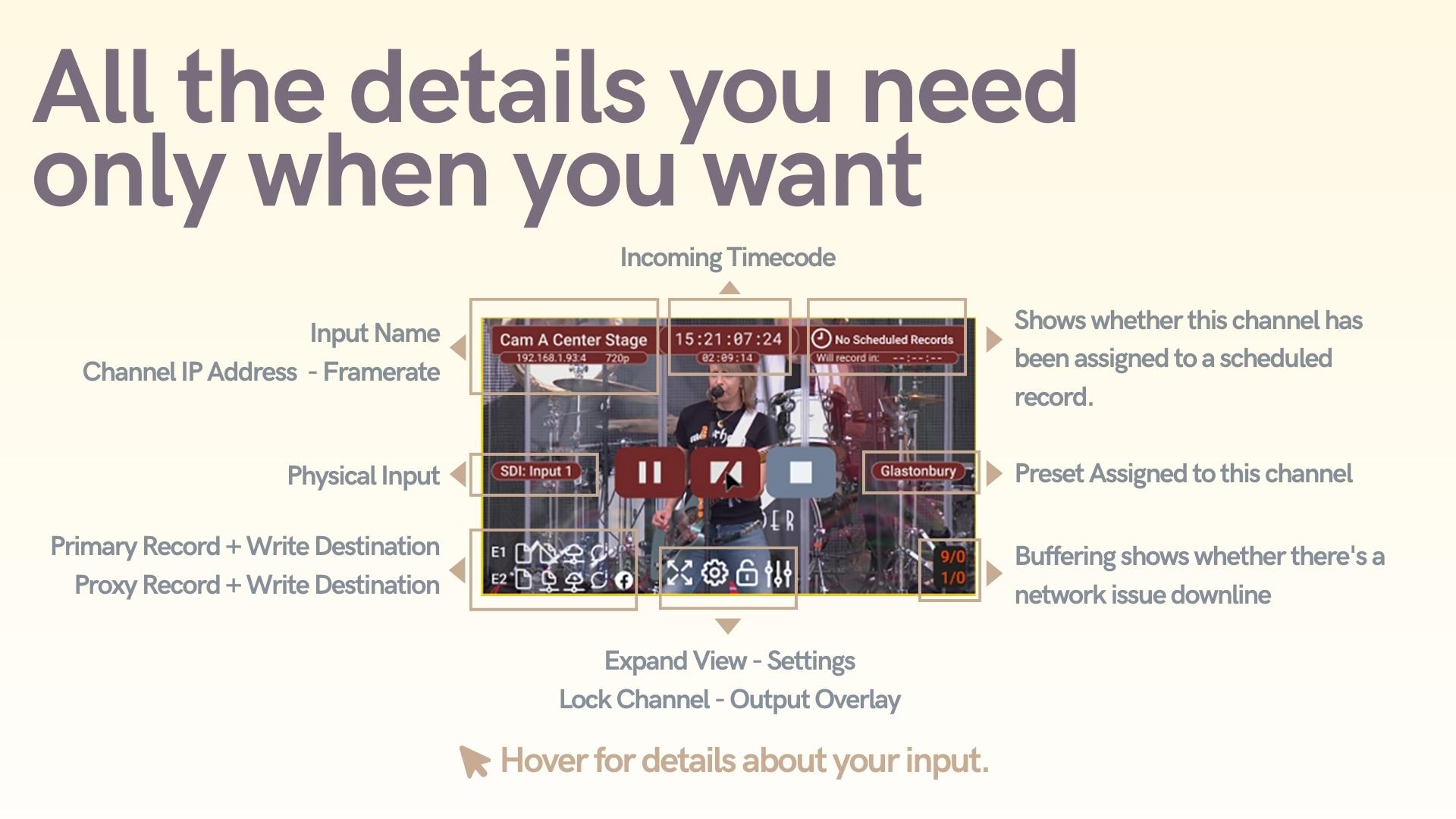 Enhance previews for your stakeholders by incorporating character overlays or timecode burns, keeping them informed about your most crucial recordings. Customize user access by defining permissions; for example, an operator may be granted record permission, while a producer could have view-only access.