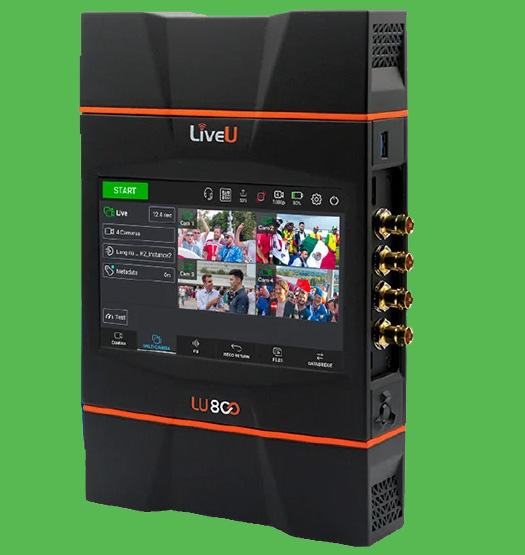 LU800 is a mobile relay device that supports camera input of up to 4 channels for news and sports broadcasts. The newly designed unit for 4K60p-10bit HDR, multi-camera, and native 5G realizes high-quality video transmission and high-speed file transfer, and is equipped with a large 7-inch screen to further improve operability. The operation during multi-camera can be easily switched from the LU800 transmitter or LU-Central on site. It has a built-in battery and is compatible with V-mount camera batteries.